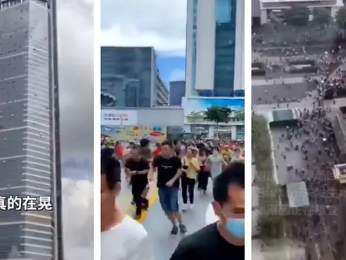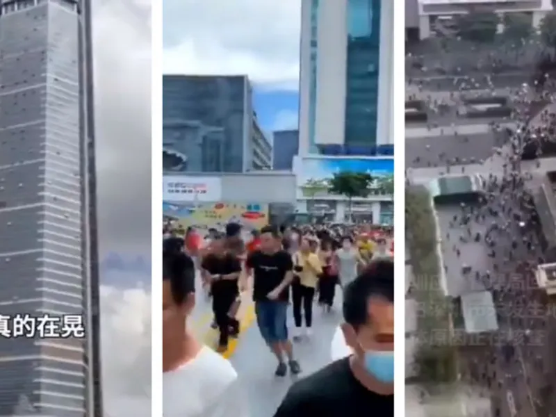 VIDEO Un zgârie-nori din China se clatină puternic, din motive inexplicabile. Oamenii fug panicați