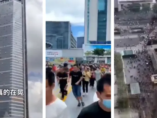 SEG Plaza, cu o înălțime de aproape 300 de metri, a început in mod inexplicabil să se clatine în jurul orei 13:00, oamenii din interior fiind evacuați în siguranță, în timp ce pietonii au început să alerge panicați pe străzi. Clădirea a fost închisă, iar accesul în interiorul ei a fost interzis începând cu ora 14.40, potrivit South China Morning Post.
