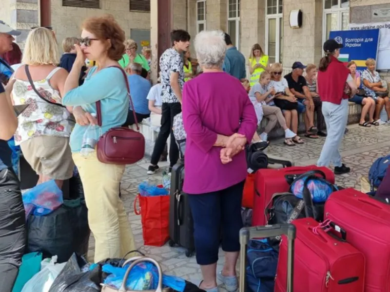 Mulți ucraineni care decid să părăsească Bulgaria călătoresc cu trenul, deoarece biletele sunt încă gratuite în România și din România în Bulgaria.