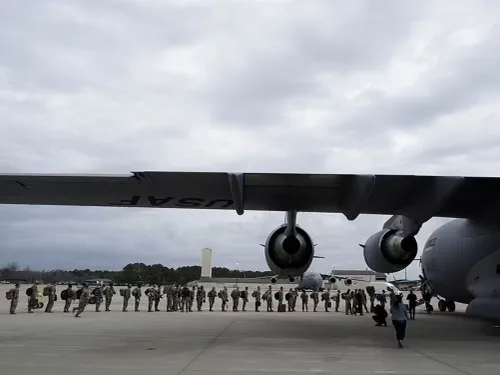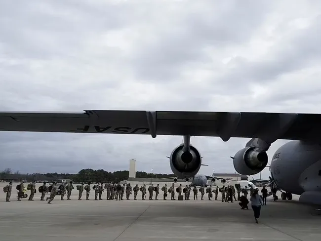 Dintre trupele ce pleacă spre Europa, 1.700 sunt parașutiști din Divizia 82 Aeropurtată a Armatei SUA, care sunt pregătiți pentru desfășurarea în Europa de Est la Fort Bragg, Carolina de Nord, de la 3 februarie 2022.