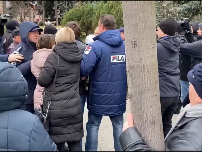 Îmbrânceli și scandal au avut loc între un grup de bărbați, susținători ai guvernării PA,S și participanții la mitingul organizat de Mișcarea Pentru Popor. Deputata Marina Tauber a calificat acțiunea grupului de bărbați drept „tentativă de omor” împotriva protestatarilor.