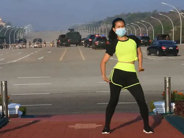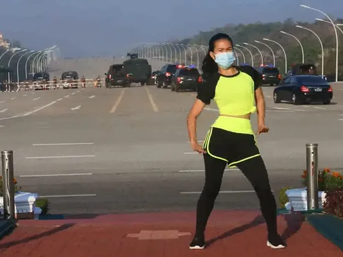 Instructorul de aerobic Daw Khing Hnin Wai a filmat momentul când puciștii se îndreptau spre Parlament pentru a da lovitura de stat în timp ce înregistra o sesiune de aerobic în capitala Naypyidaw.