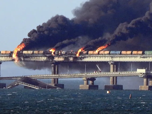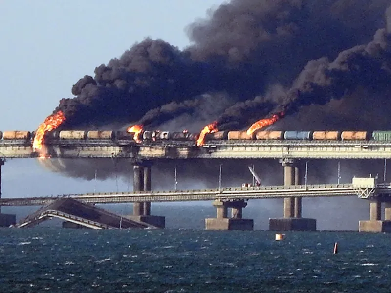 Sâmbătă dimineață o explozie puternică a zguduit podul Kerci - Podul lui Vladimir Putin cum mai este numit, construit pe repede-nainte după anexarea Crimeei în 2014. Imaginile de pe carele de supraveghere au surprins momentul exploziei de pe Podul Kerci, iar serviciile rusești au vorbit despre un camion-capcană care ar fi fost detona