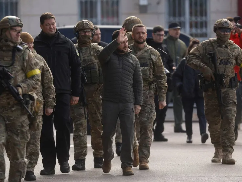 Președintele VolodImir Zelenski a sosit în orașul Herson, care a fost eliberat de invadatorii ruși, potrivit Pravda.