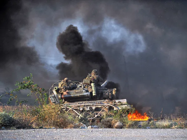 Imaginile, înregistrate de o cameră cu vedere pe timp de noapte, arată vehicule de luptă rusești complet distruse de loviturile ucrainene, cu turela unui tanc ruptă complet din carenă.