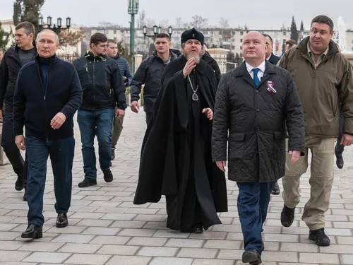 Preşedintele rus Vladimir Putin a efectuat, sâmbătă, 18 martie, o vizită în Crimeea, apoi, conform Kremlinului, a mers cu elicopterul la Mariupol, orașul-port ucrainean ras de pe fața Pământului de trupele Moscovei.