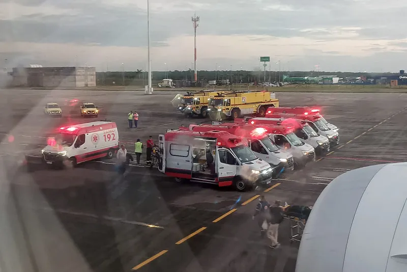 Compania spaniolă a informat pe rețeaua de socializare X că aeronava "a aterizat normal" în Natal (nord-est) și că "răniții au fost preluați".