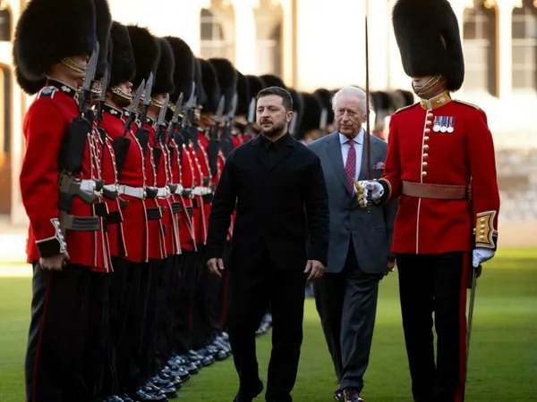 La sosirea sa la Londra, Zelenski s-a întâlnit cu regele Charles al III-lea și a inspectat Batalionul 1 al Gărzilor Grenadierilor, înainte de a fi primit la Castelul Windsor.