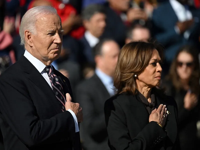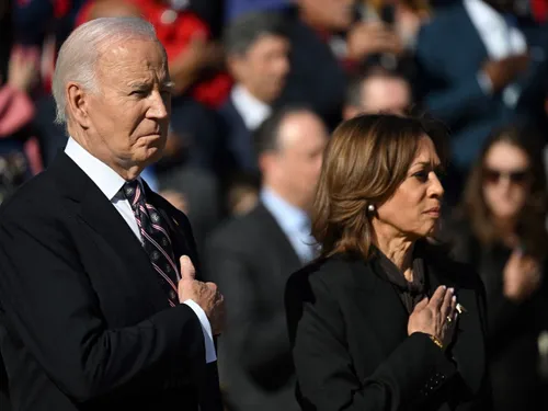 Preşedintele american Joe Biden a participat luni la marcarea Zilei Veteranilor alături de vicepreşedinta sa Kamala Harris, fiind prima lor apariţie comună după înfrângerea suferită de aceasta în faţa lui Donald Trump la alegerile prezidenţiale de săptămâna trecută, consemnează AFP.