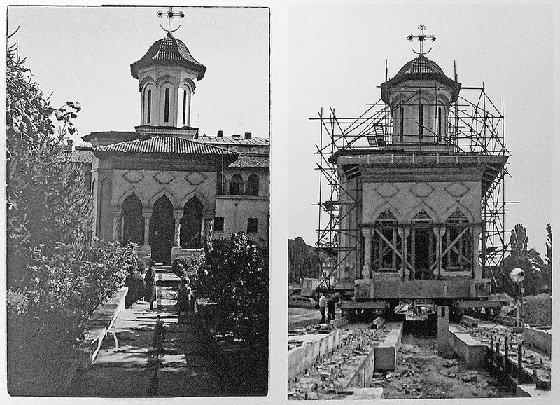 În ’85. Atunci începuseră deja să ridice Casa Poporului. Unul dintre cei intervievați, care locuia pe strada Sfinții Apostoli, într-un bloc care a scăpat de demolare, ne-a zis că și-au dat seama cât de adâncă este fundația și câte niveluri trebuie să fie în subteran la Casa Poporului, pentru că a durat vreo doi ani până au ieșit la suprafață și, pe urmă, văzând cum se ridica construcția la suprafață, au putut estima cât le luase în subteran. Ne-au povestit și cum a fost translatată Mănăstirea Mihai Vodă, care era mutată așa de încet, încât nu-ți dădeai seama că se mișcă.
