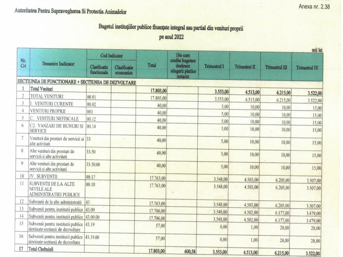 Din documentele văzute de Newsweek România reiese că ASPA a avut, anul trecut un buget de peste 17 milioane de lei, asigurat de Primăria București (foto sus). În 2021 bugetul a fost mult mai mic de 14 milioane de lei.