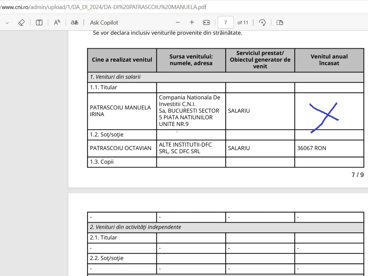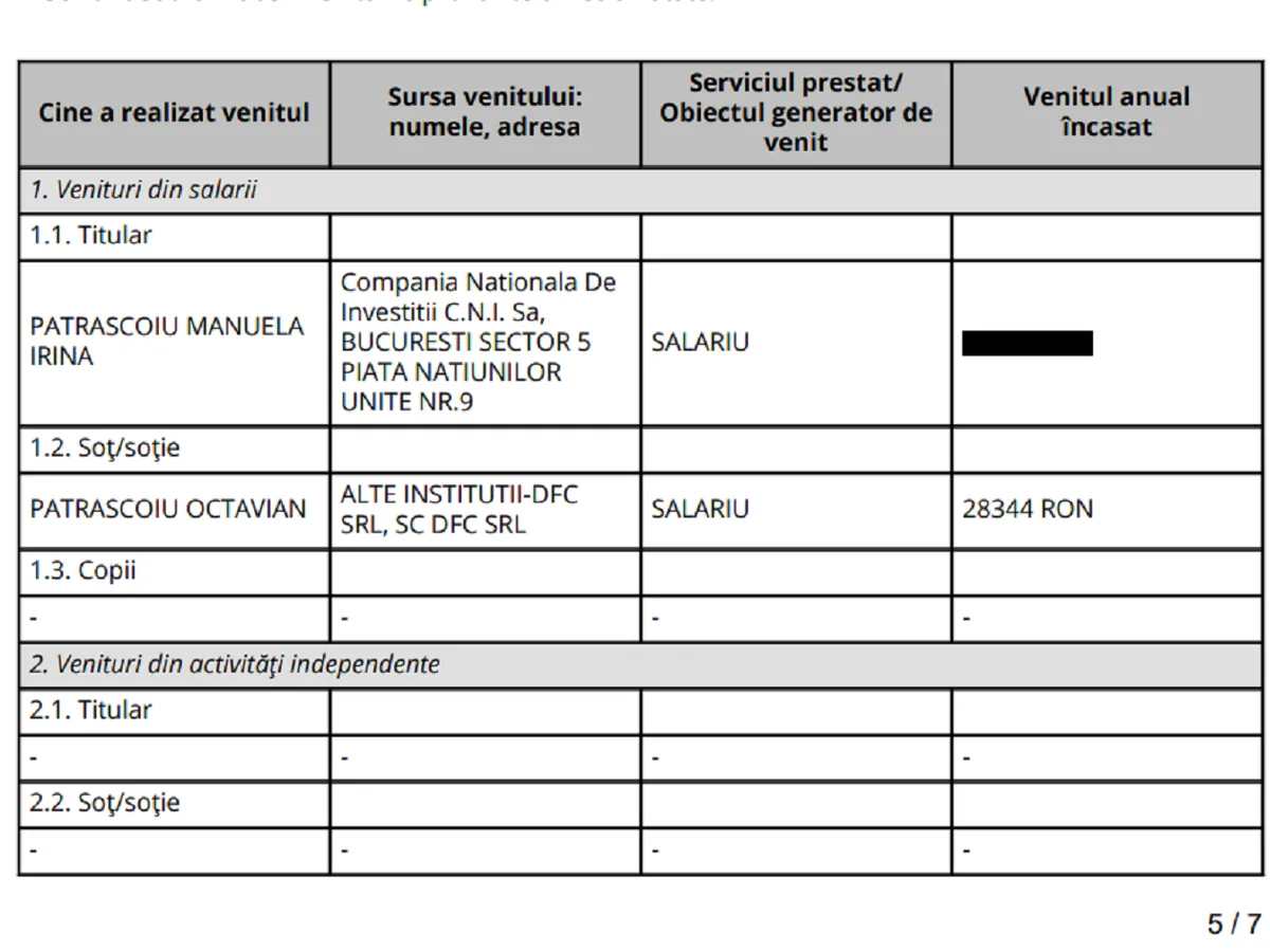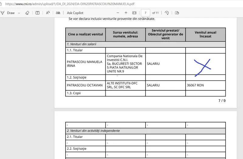În Declarația de avere din 2023 pur și simplu a trecut cu un marker peste salariul pe care îl ia de la CNI.