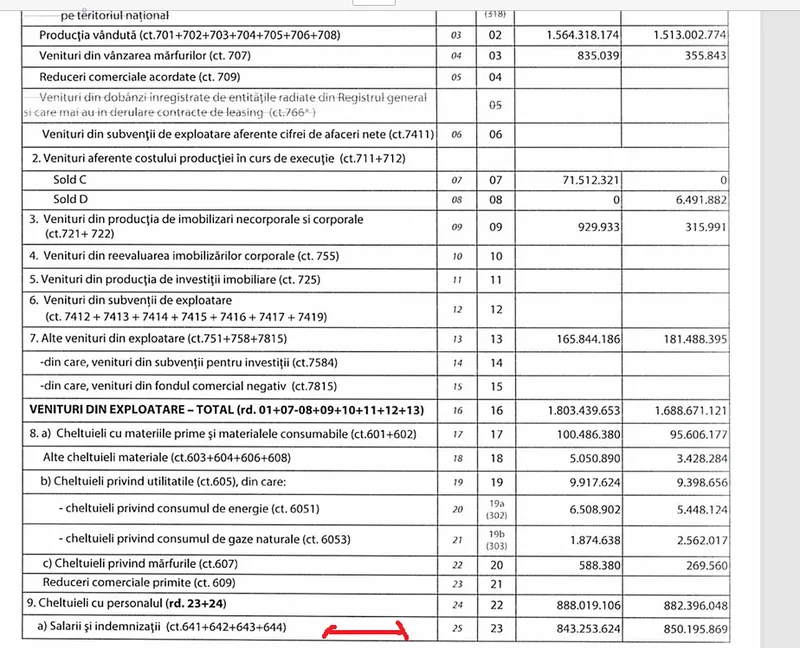 Salariile reprezintă jumătate din veniturile din exploatare, care au fost de 1.680.000.000 lei în prima parte a anului.