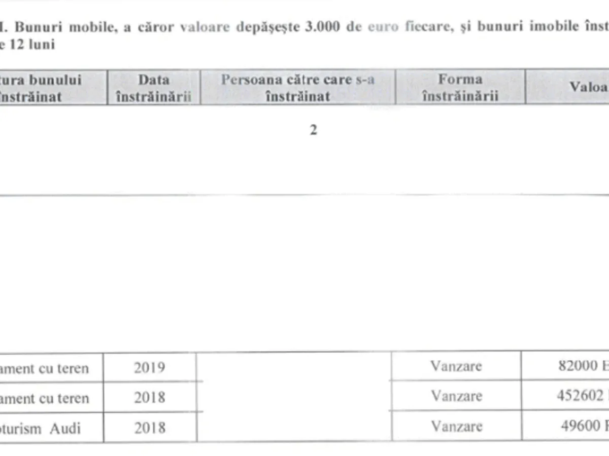 Astfel, a vândut două apartamente și două mașini (un Audi și un Porsche). Nici unul din cumpărătorii bunurilor nu a fost menționat în declarația de avere, deși legea cere expres pomenirea numelor în rubrici specifice din declarația de avere.