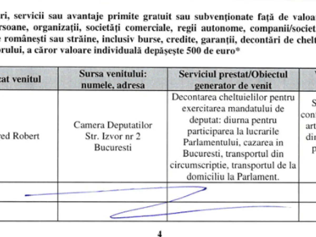 Și tot confidențială este și suma încasată de deputatul PSD pentru diverse cheltuieli decontate de Camera Deputaților.