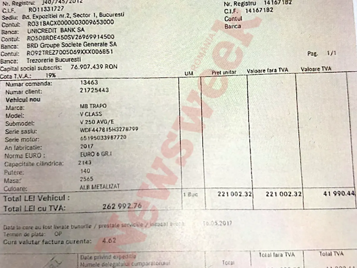 Într-un cont mai avea peste 93.000 lei. Tot în acel an, soția sa și-a cumpărat un Mercedes din 2016 în rate.