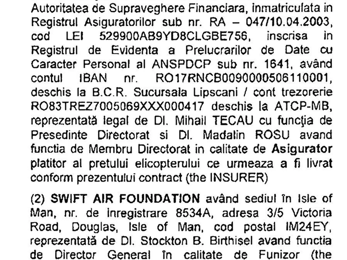 Concludent este și că Swift Air Foundation, furnizorul oficial al elicopterului pentru Interne (SMURD), a fost înființată (conform datelor publice ale Registrului Comerțului din Isle of Man) pe 12 iunie 2017, cu o săptămână înainte de semnarea convenției de livrare a elicopterului.