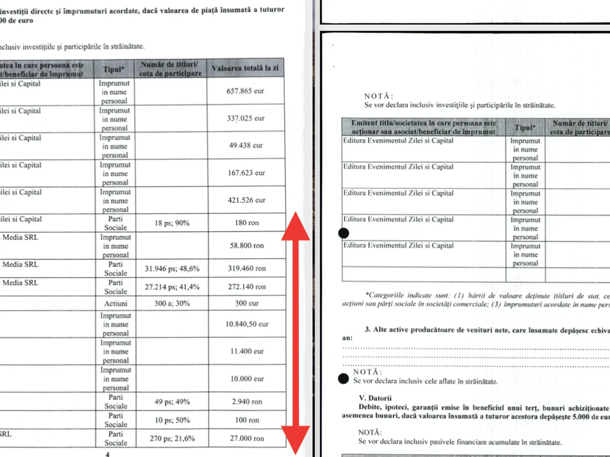 Astfel, în cea de-a doua declarație apare o vilă la Bușteni care nu exista în prima, din 26 octombrie. Poate părea că o altă noutate a fost un apartament la Sinaia. De fapt, este doar jumătate de apartament, menționat separat de cealaltă jumătate, în a doua declarație.