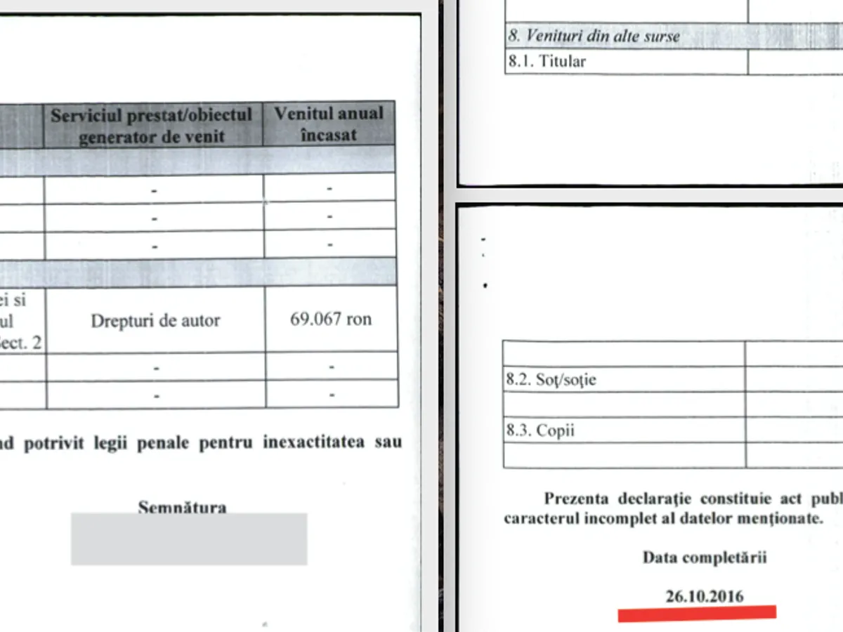 După cum se poate vedea, în stânga se află declarația de avere depusă pe 16 noiembrie 2016.