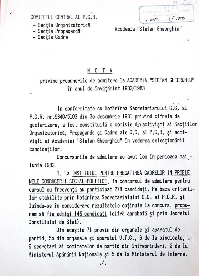 “În lumina orientărilor și indicațiilor secretarului general al partidului, sub directa sa îndrumare, în țara noastră s-a dezvoltat un adevărat sistem de conducere democratică a țării de către popor”,… „în jurul Partidului Comunist Român se realizează unirea și coordonarea întregului popor în procesul de făurire a societății socialiste multilateral dezvoltate”, scria actualul șef al CCR.