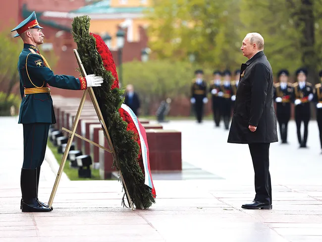 După ce aflăm despre modul în care Stalin și veteranii din armata sovietică au eliberat Europa, ni se precizează că: „Ceremonialul de doliu solemn al depunerii de flori este însoțit în mod tradițional de un moment de reculegere în memoria tuturor celor care au murit în timpul Marelui Război Patriotic.