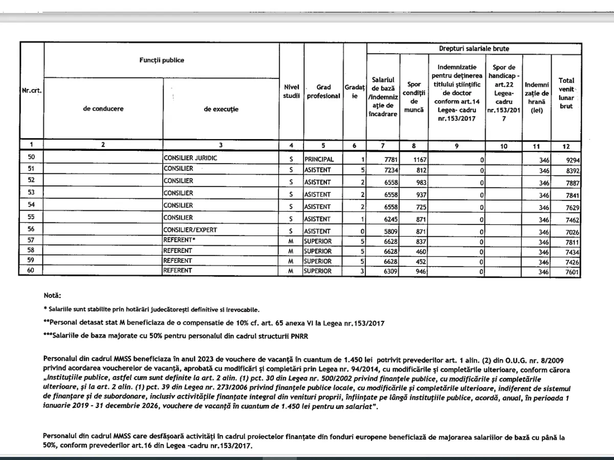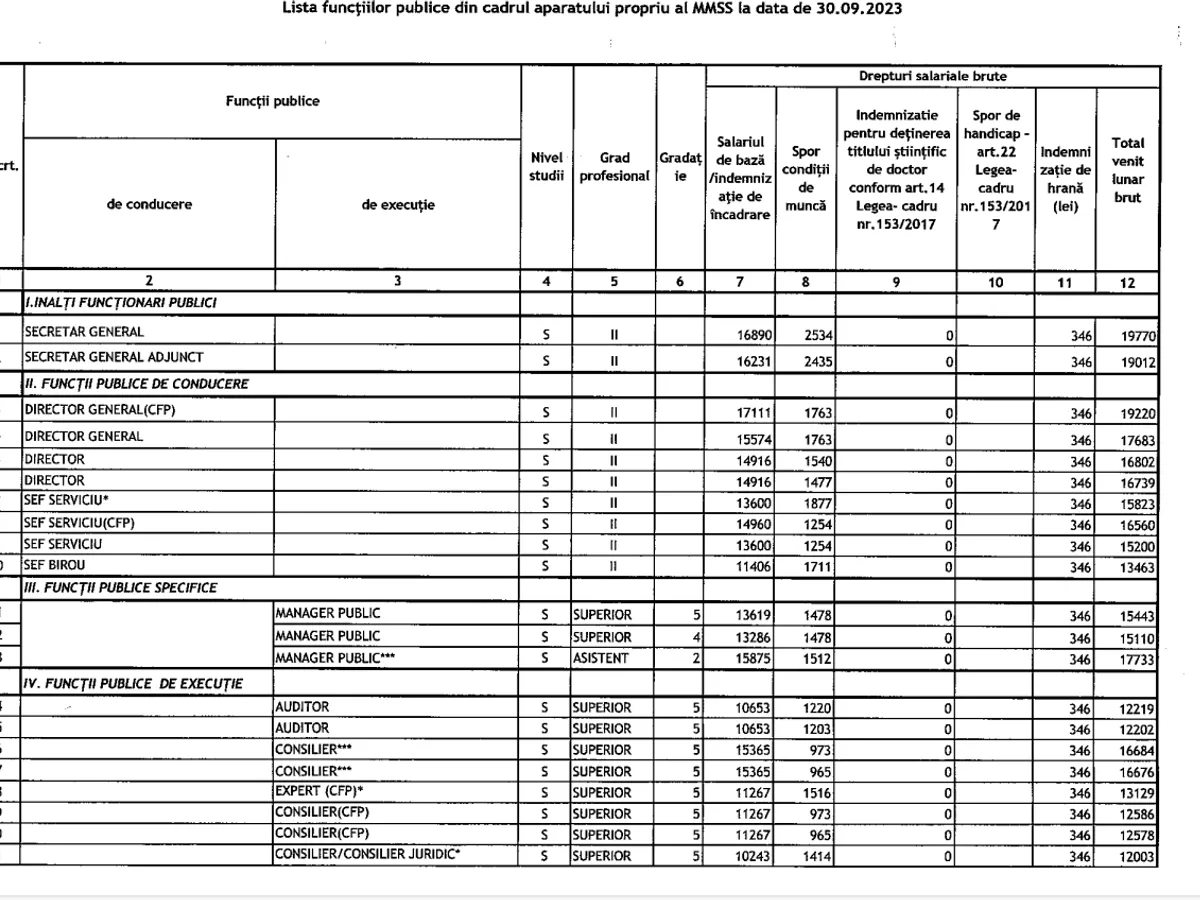În acest moment, la Ministerul Muncii, un consilier auditor câștigă 10.000 lei brut, la care se adaugă 1.000 lei spor de condiții vătămătoare de muncă.