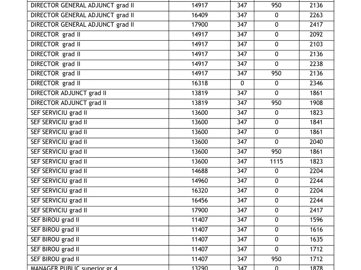 Directorii și șefii de serviciu iau între 11.000 lei și 18.000 de lei și un spor ce ajunge și la 2.200 lei.
