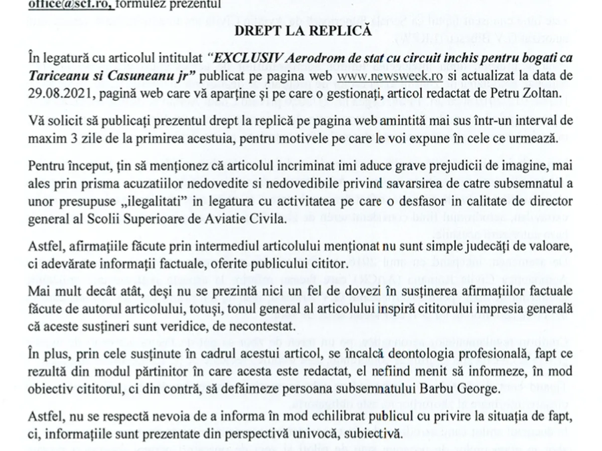 După publicarea articolului, George Barbu a trimis un drept la replică (integral, mai jos).