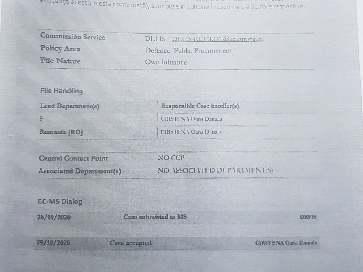 Direcția Generală Industria Apărării și Spațiu a Comisiei Europene a cerut mai multe documente despre această controversată afacere care ar putea să genereze o nouă procedură de infringement împotriva României. Ministrul Apărării, Nicolae Ciucă, nu a vrut să comenteze acțiunea deschisă de Comisia Europeană.