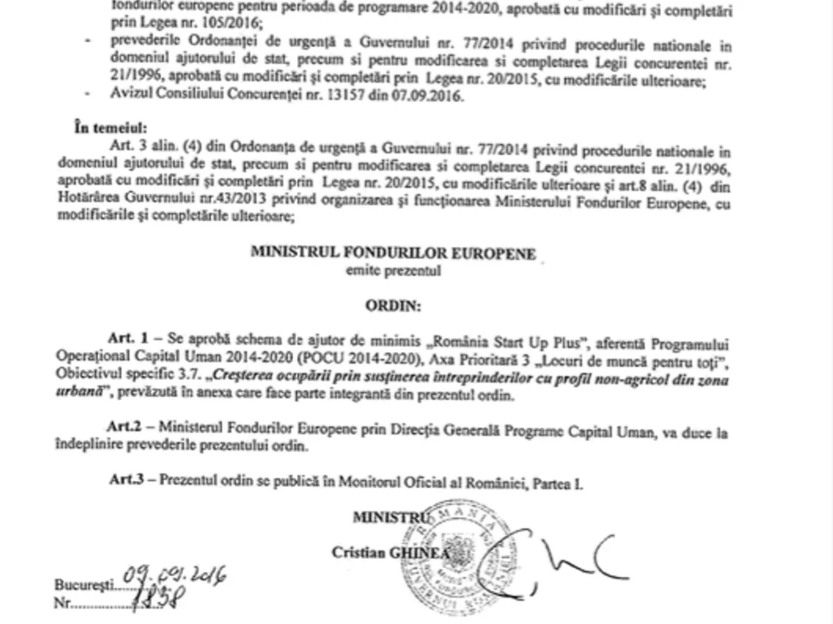 După nici două luni și jumătate, pe 9 septembrie 2016, ministrul Fondurilor Europene, Cristian Ghinea, semnează ordinul de ministru 1839 prin care aprobă Ghidul Solicitantului Condiții Specifice