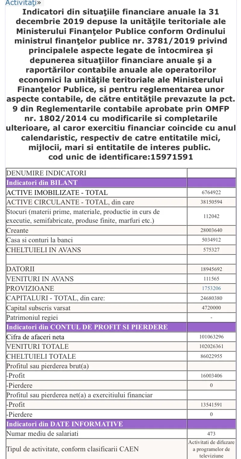 Așadar, între 2017 și 2019, veniturile Antenei 3 SA au crescut cu 50% (de la 65,5 la 102 milioane de lei), profitul de aproape zece ori (de la 1,7 milioane lei brut la 16 milioane de lei) și numărul de angajați cu 81 (de la 392 la 473).