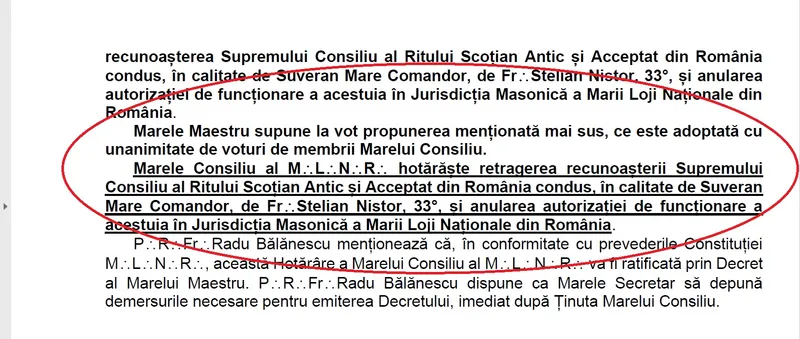 Conform acestui document, Marele Maestru Radu Bălănescu îi reproșează lui Stelian Nistor că „nu a solicitat MLNR semnarea și reînnoirea Concordatului, care a expirat” în 2018.