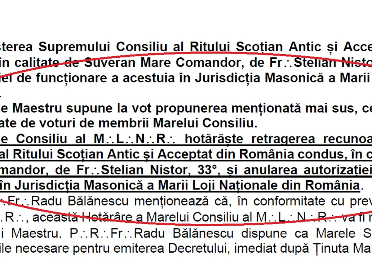 „Drept urmare, un grup de Frați de Grad 33 și Ultim al Ritului Scoțian Antic și Acceptat din România au hotărât formarea unui Suprem Mare Consiliu condus de Prea Puternicul și Ilustrul Frate Răzvan Buzatu, 33°, pentru a continua perpetuarea tradiției, a cutumelor și a învățăturilor Ritului Scoțian Antic și Acceptat printre Frații membri și simpatizanți din cadrul Marii Loji Naționale din România, care fac parte în prezent, dar și a celor care vor dori să facă parte din Ritul Scoțian Antic și Acceptat din România în viitor”, se menționează în Planșă.