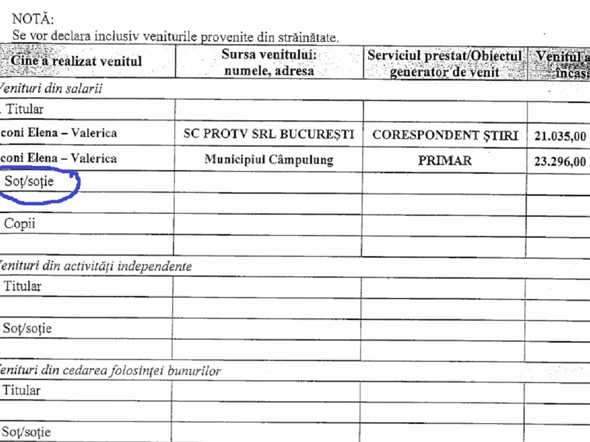 DECLARAȚIA DE AVERE A ELENEI LASCONI din care reiese că soțul ei nu a avut niciun venit în 2020.
