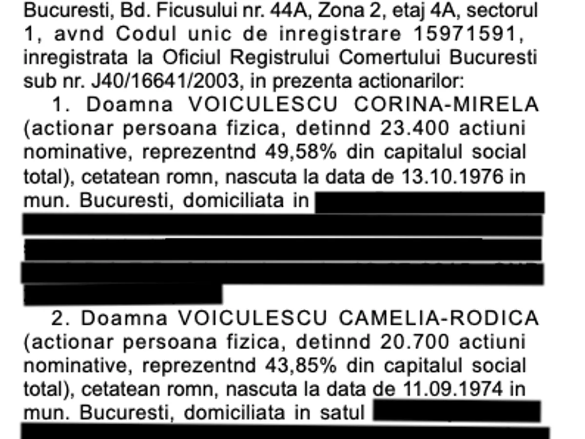 Când acționarul Sorin Oancea a ieșit din companie, acțiunile au fost vândute Fundației Dan Voiculescu pentru Dezvoltarea României, conform "Monitorului oficial": "Se aproba vanzarea tuturor actiunilor detinute de actionarul Oancea Sorin in cadrul Societatii catre actionarul Fundatia Dan Voiculescu pentru Dezvoltarea Romniei, in conditiile prevazute in Contractul de vânzare-cumparare incheiat intre Sorin Oancea si Fundatia Dan Voiculescu pentru Dezvoltarea României, la data de 23.09.2016, si atestat sub nr. 207/23.09.2016."
