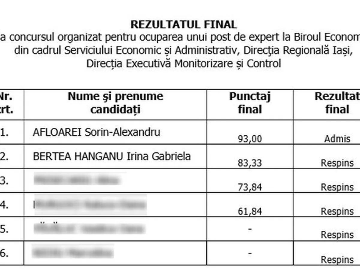 Precizăm că ANCOM nu a primit contestații la niciuna dintre probele procesului de angajare desfășurat la Iași, candidaţii având dreptul de a solicita reevaluarea prestaţiilor la proba scrisă şi la interviu în termen de cel mult 1 zi lucrătoare de la data publicării rezultatelor pe pagina de internet a ANCOM”, a fost reacția Biroului de Presă al ANCOM București.