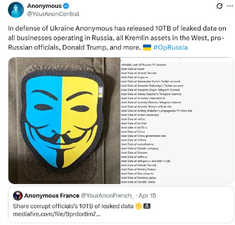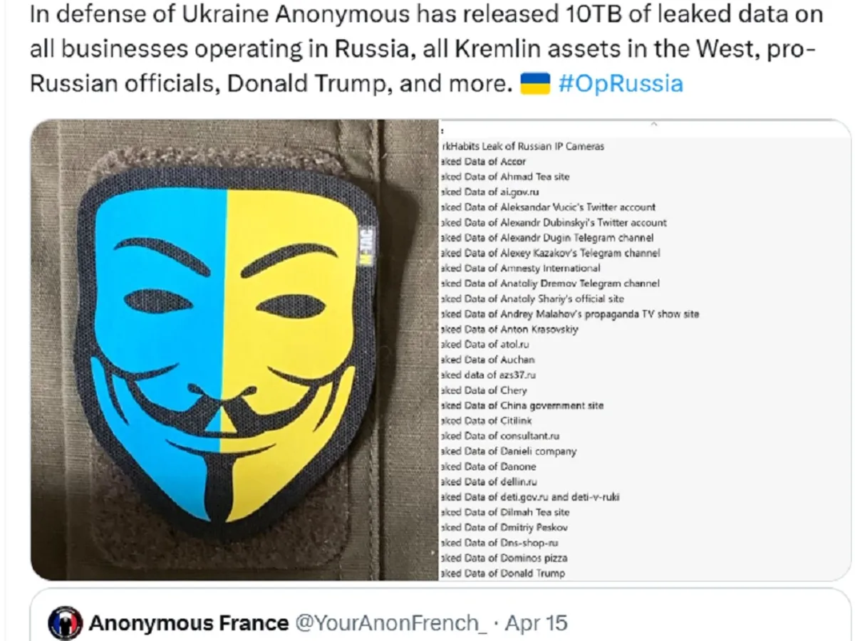Hackerii de la Anonymous susțin că au publicat 10 terabiți de date care expun secretele Rusiei, legăturile pro-ruse cu Occidentul, inclusiv informații secrete despre Donald Trump.
