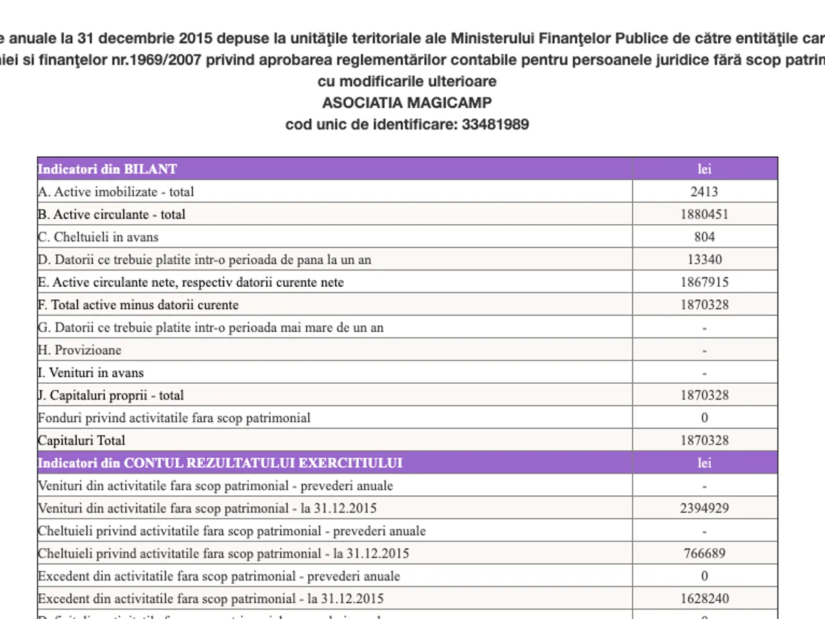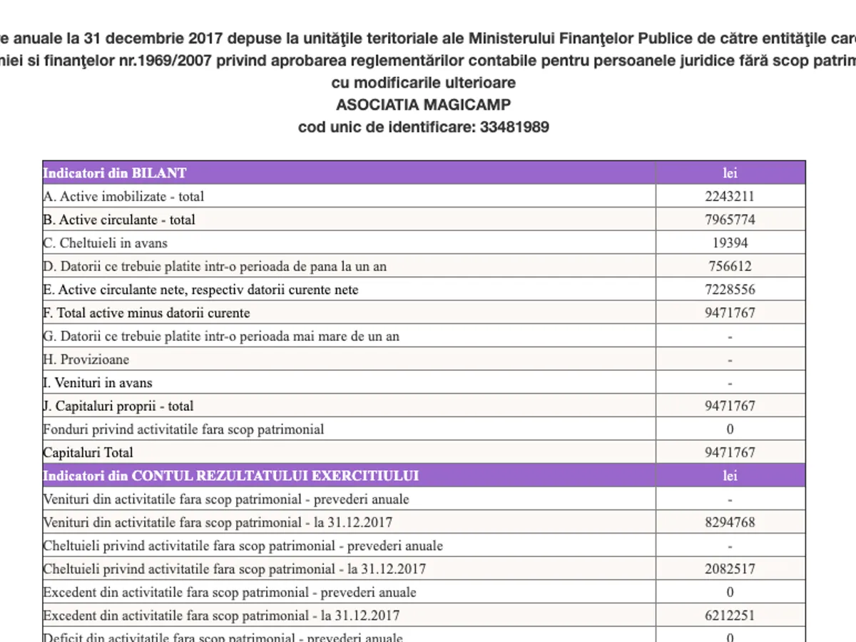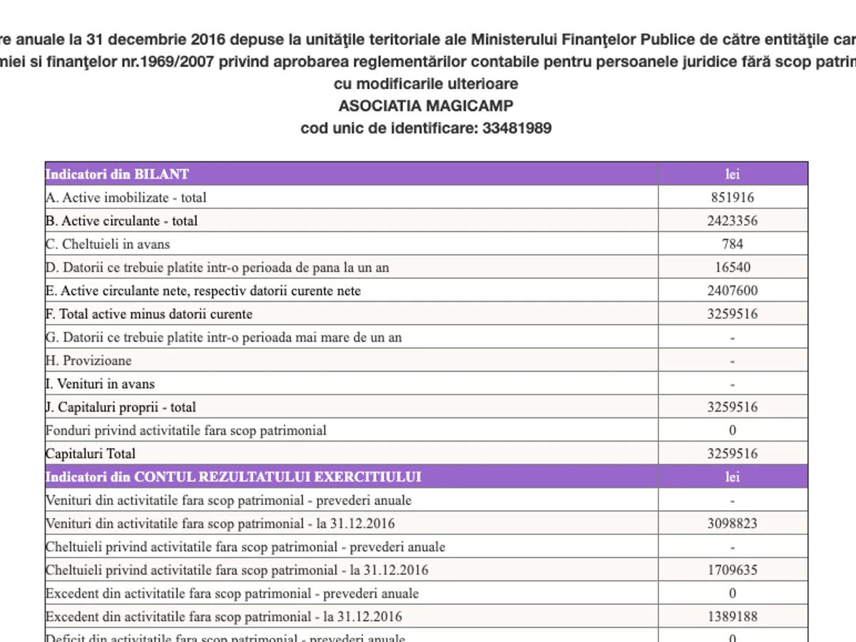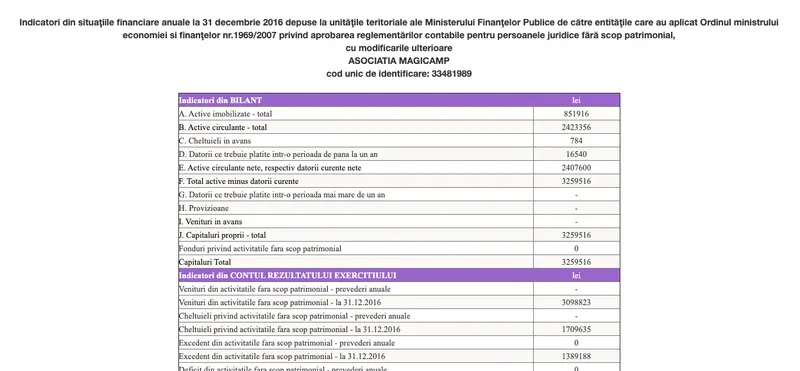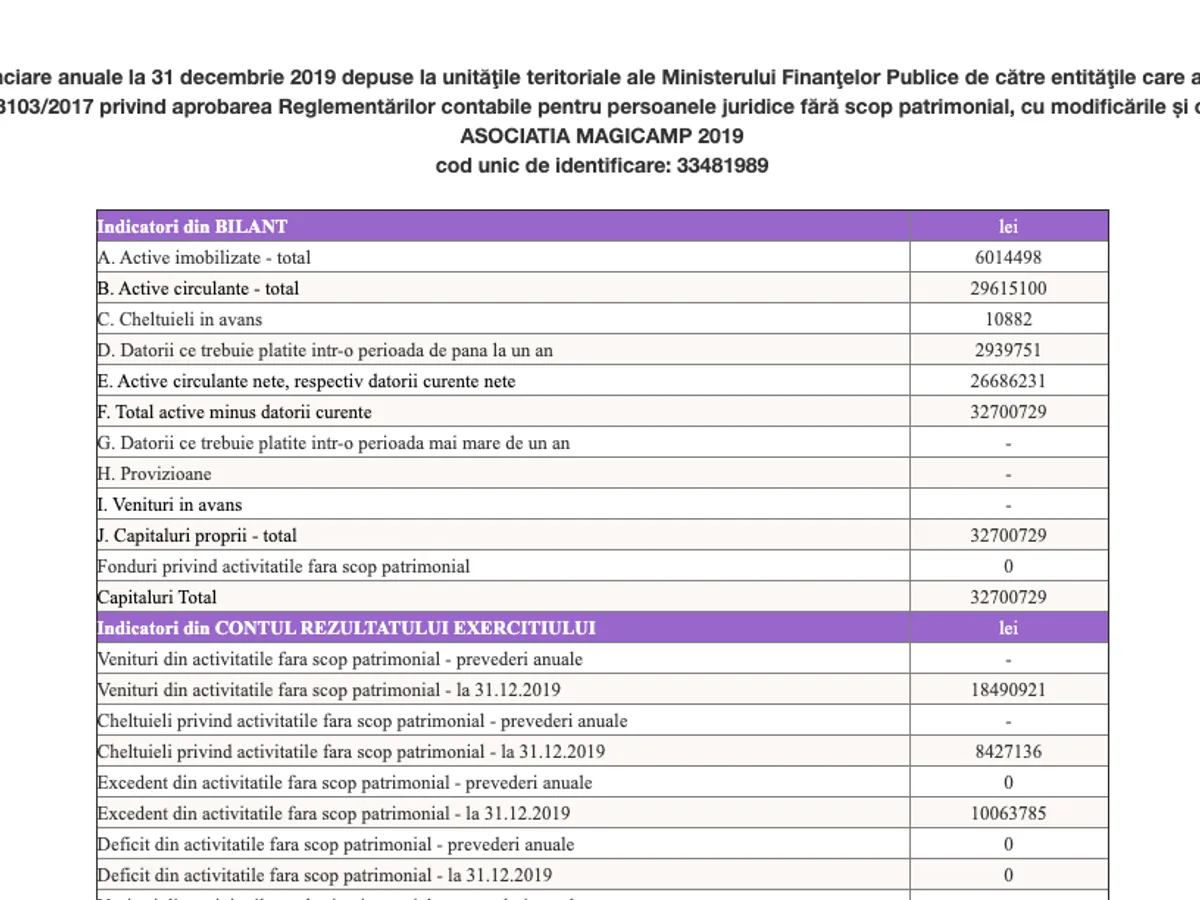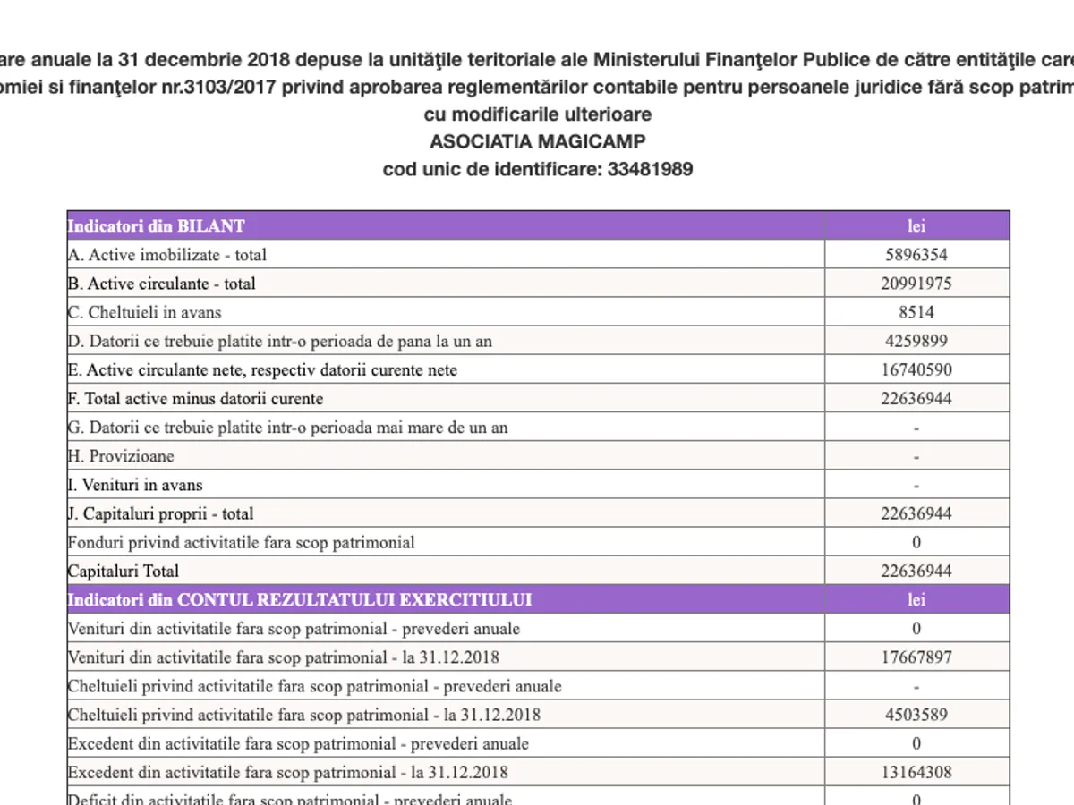După cum se poate vedea mai sus, în situația contabilă disponibilă pe site-ul Ministerului de Finanțe, excedentul total a depășit 32 milioane lei (rubrica "Capitaluri Total").