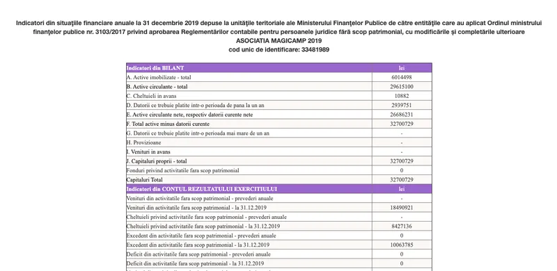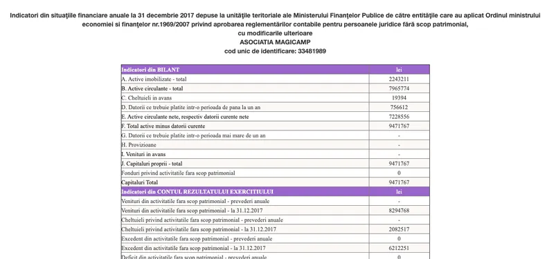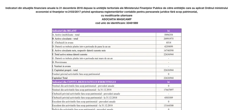 Potrivit datelor publice de la Ministerul de Finanțe, Asociația Magicamp a colectat, din 2015 până în 2019, 49,92 milioane lei. Din această sumă, însă, a cheltuit numai 17,46 milioane lei. Suma necheltuită, deci rămasă, se ridică la peste 32 de milioane de lei, echivalentul a peste șase milioane de euro.