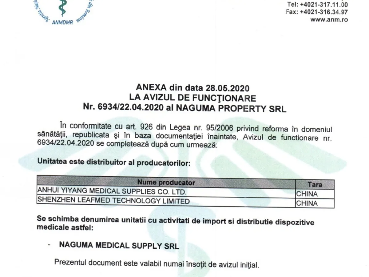 Compania Naguma Medical Supply a fost înființată în octombrie 2019 și este deținută de două companii de tip off shore înregistrate în Cipru: Drouf Holding Limited și Benevo Holding Limited, reprezentată de Michael Topolinsky. Obiectul principal de activitate al firmei este dezvoltarea imobiliară. La aproximativ două luni după ce a donat cele 30.000 de măști, Ministerul Sănătății i-a atribuit contractul prin „negociere directă” firmei Naguma Medical Supply, de la care urmează să achizițoneze 115 milioane de măști.