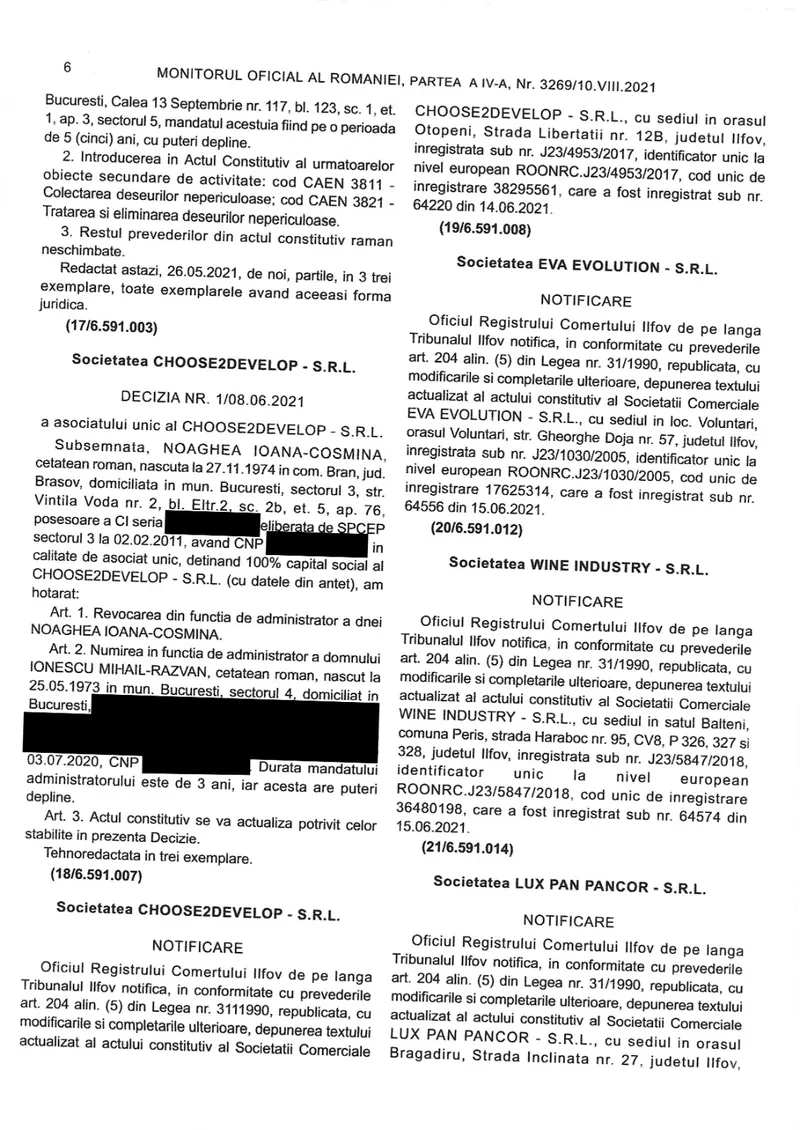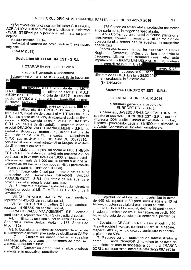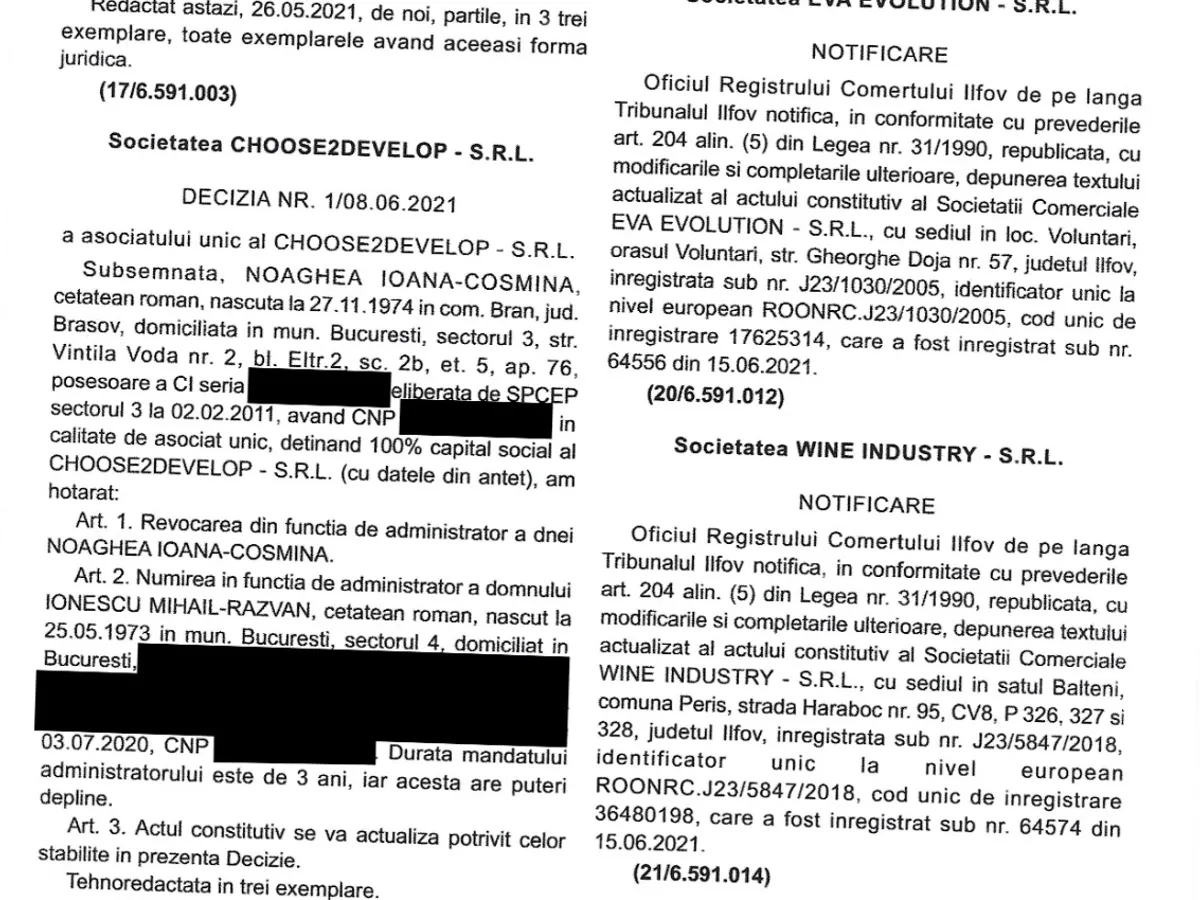 De altfel, Răzvan Ionescu este în continuare administrator și acționar minoritar la o serie de companii deținute de cei doi.
