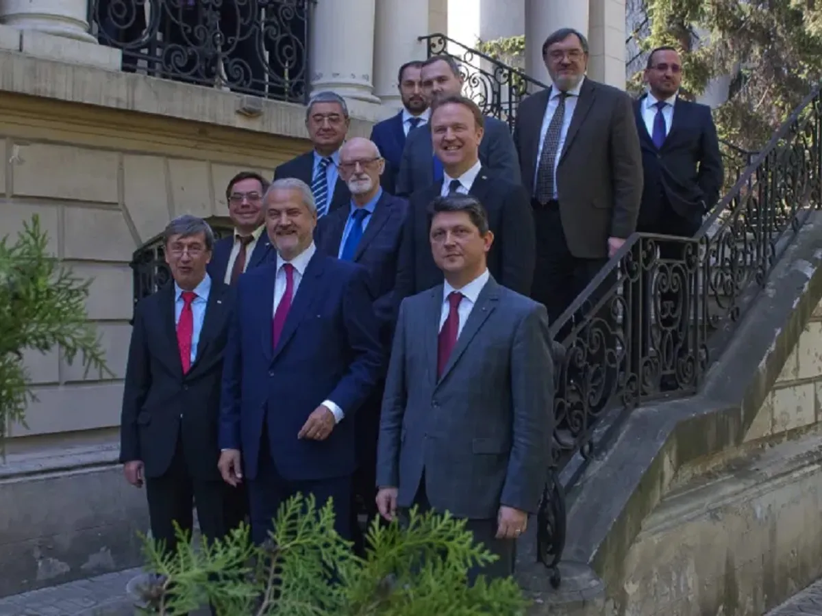În poza care marchează finalul evenimentului, în primul rând sunt Corlățean, Năstase și Kuzmin. (foto jos)