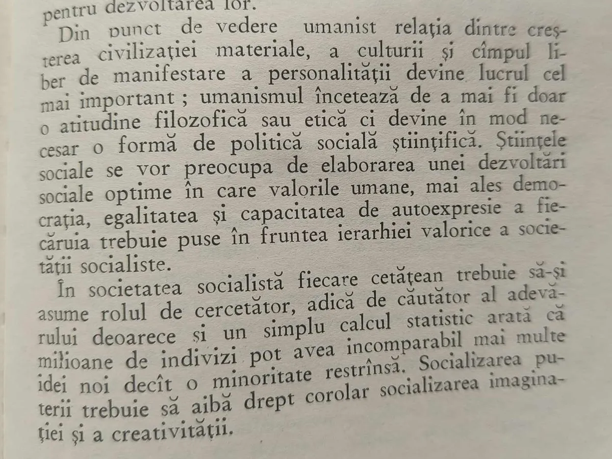 Cartea se termină un mesaj mobilizator, așa cum îi stă bine unui propagandist: „În societatea socialistă fiecare cetățean trebuie să-și asume rolul de cercetător, adică de căutător al adevărului, deoarece și un simplu calcul statistic arată că milioane de indivizi pot avea incomparabil mai multe idei noi decât o minoritate restrânsă. Socializarea puterii trebuie să aibă drept corolar socializarea imaginației și creativității”.