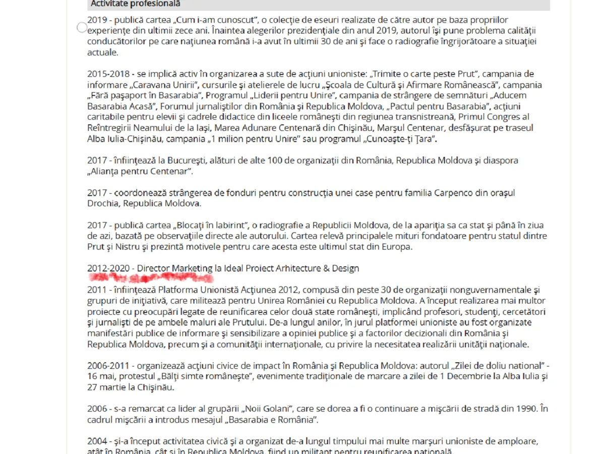 Pe de altă parte, George Simion pretinde în CV-ul său că a avut o activitate profesională bogată. O minciună!