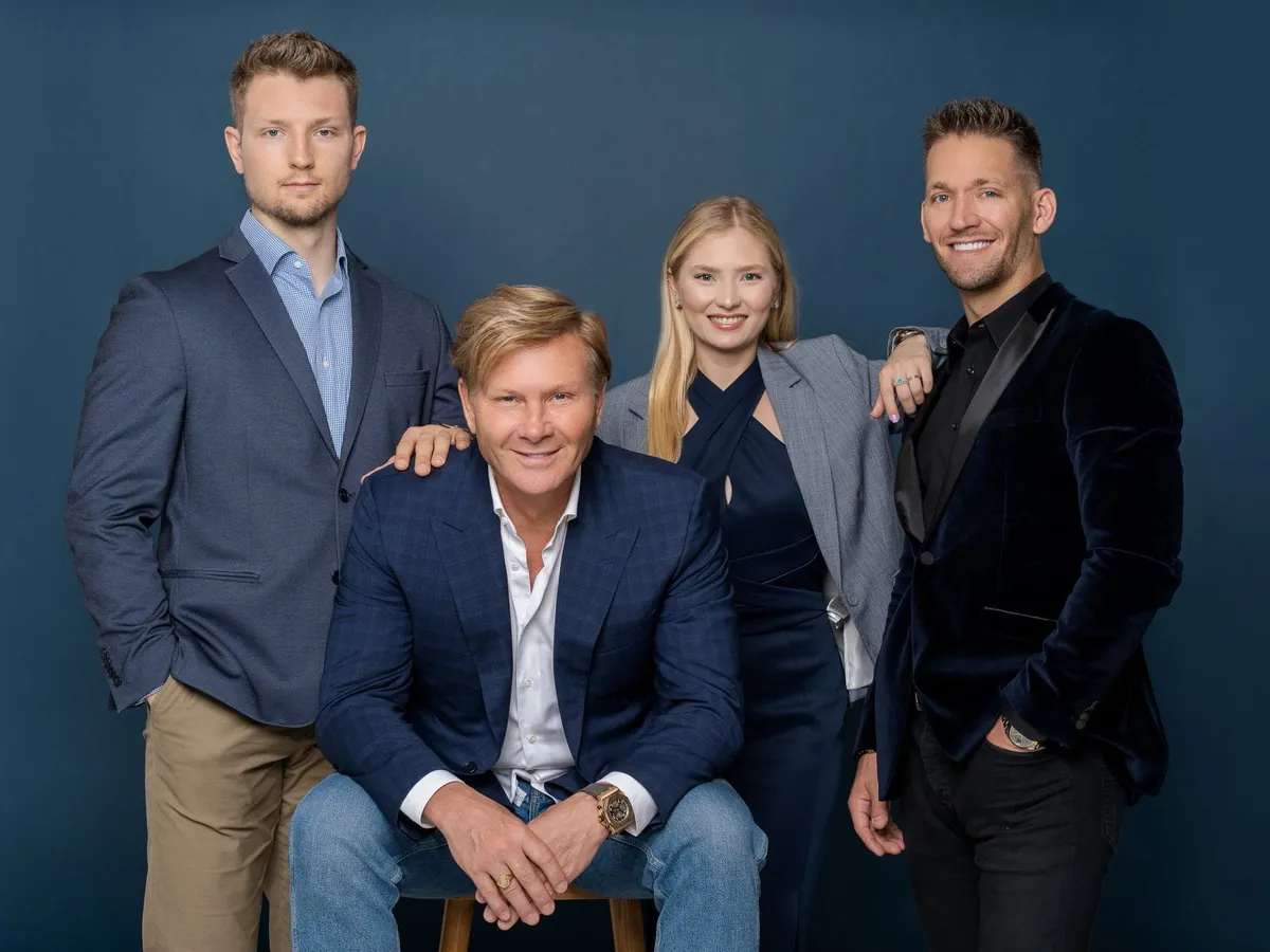 FOTO TOPOLINSKI. Aflat în centrul fotografiei, înconjurat de cei trei copii ai săi, afaceristul canadian își spune Michael Topolinski al lll-lea, pe modelul unei dinastii monarhice. A devenit cunoscut la noi după ce a achiziționat fosta fabrică Aversa din Bucur Obor, în urmă cu mai bine de un deceniu, în 2013, dar a finalizat plata abia anul trecut, dar și pentru măștile de protecție livrate în pandemie.