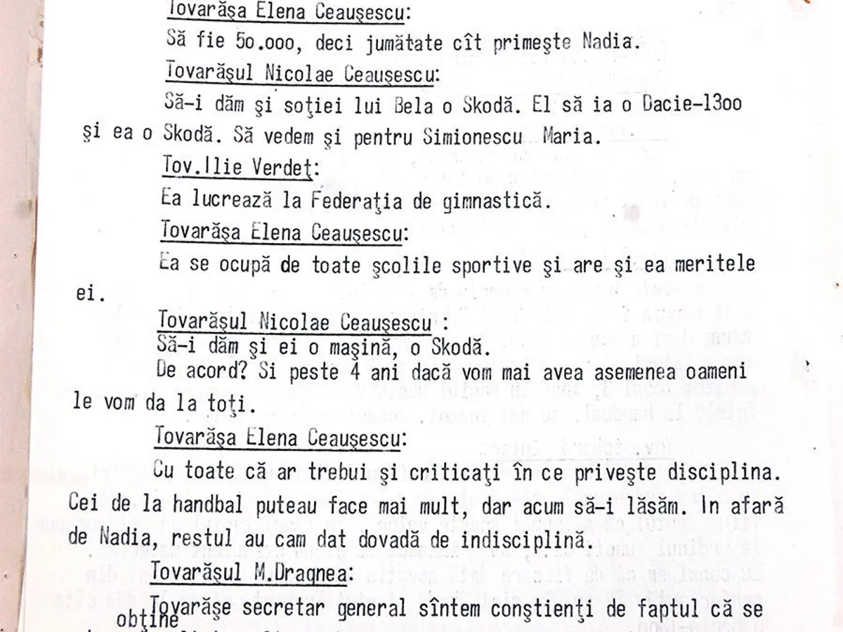 Skoda și 100.000 lei pentru Nadia după JO de la Montreal. Ședința în care Ceaușescu a împărțit banii