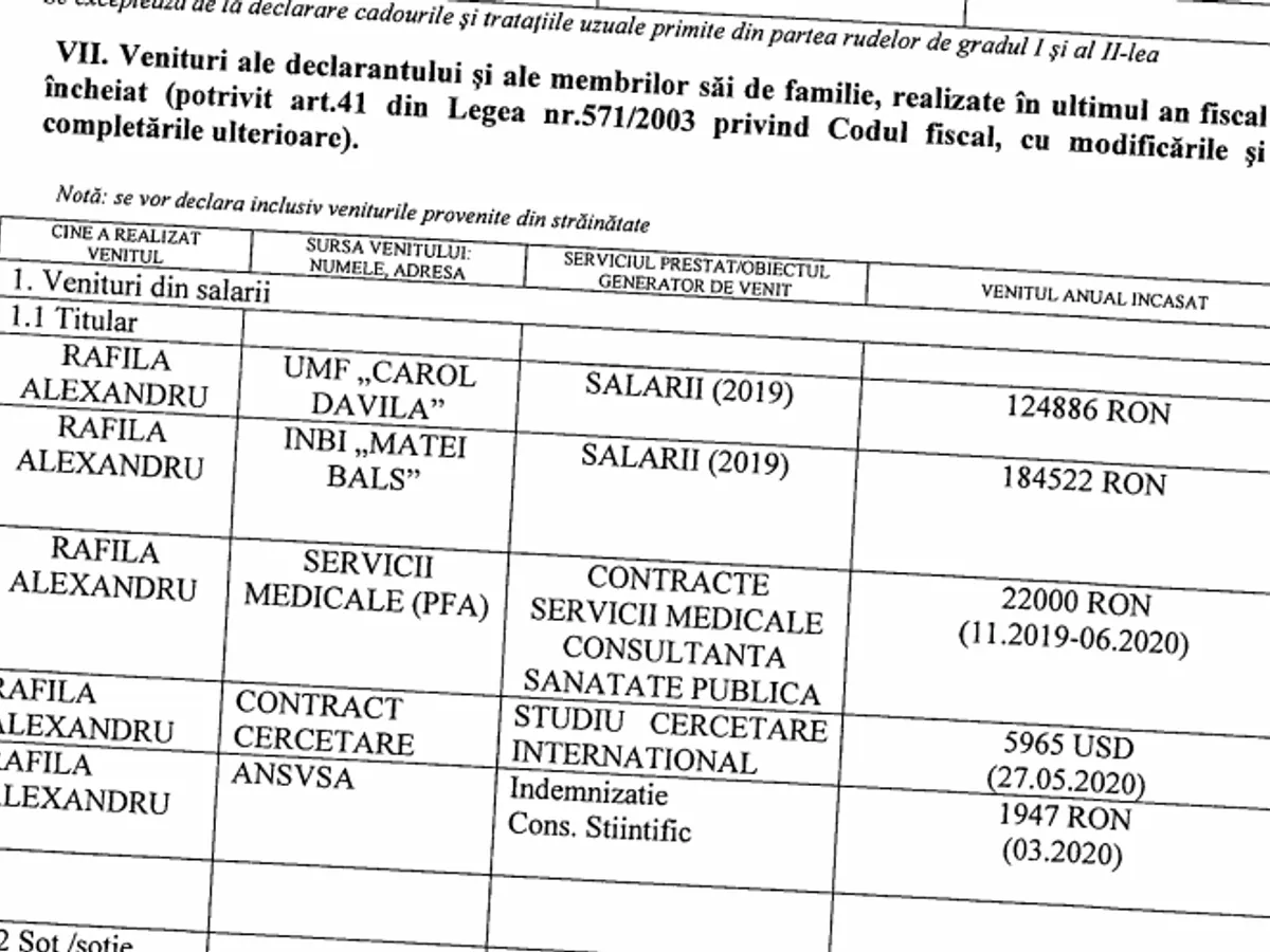 Iar 333.000 lei sunt salariile obținute de Alexandru Rafila de la UMF și "Matei Balș", plus ceva mărunțiș din alte surse.