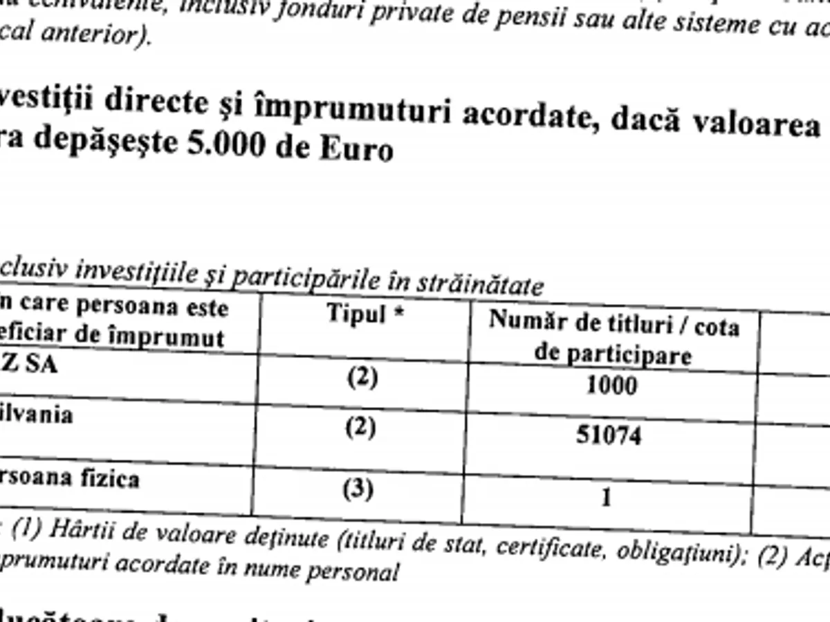 Acțiunile pe care le deține reprezentantul României la Organizația Mondială a Sănătății nu sunt ieftine: 300.000 lei, contravaloarea acțiunilor la Transgaz și 120.000 lei, a celor de la Banca Transilvania.