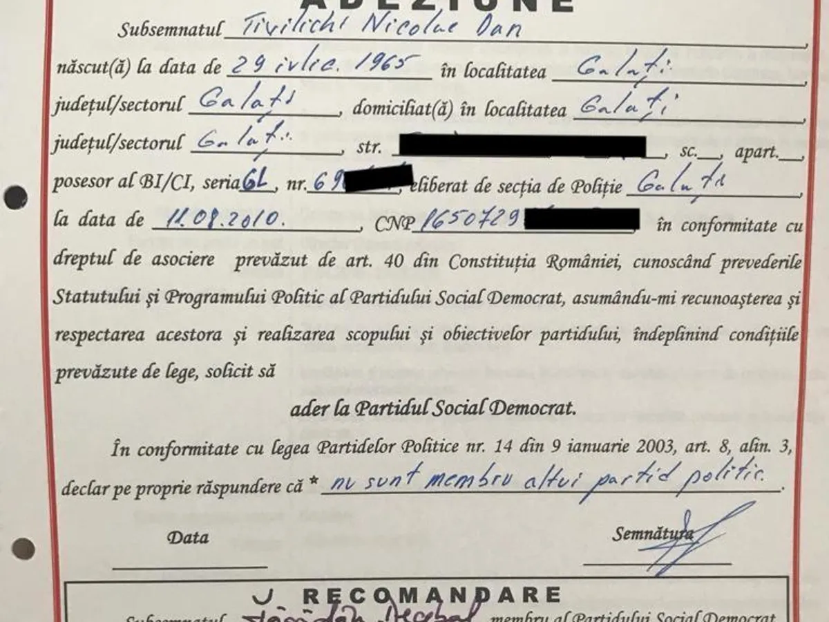 Tivilichi a mai făcut o mutare care să-l ajute să-și îndeplinească obiectivul. Mutare care, însă, în actualul context politic s-ar putea să-i fie fatală. Astfel, cu recomandarea primarului constănțean Decebal Făgădău, fostul șef al portului s-a înscris în PSD. Adeziunea nu poartă dată, însă are toate semnăturile necesare și, cel mai probabil, a fost parafată la începutul anului curent.