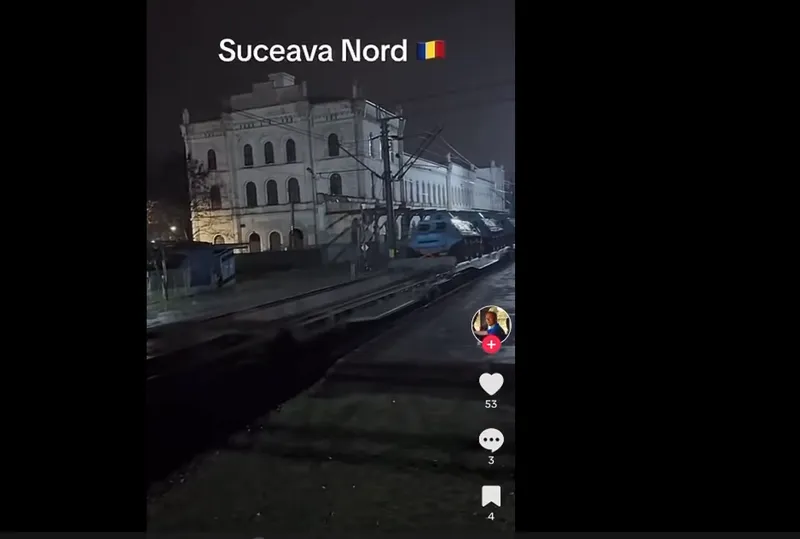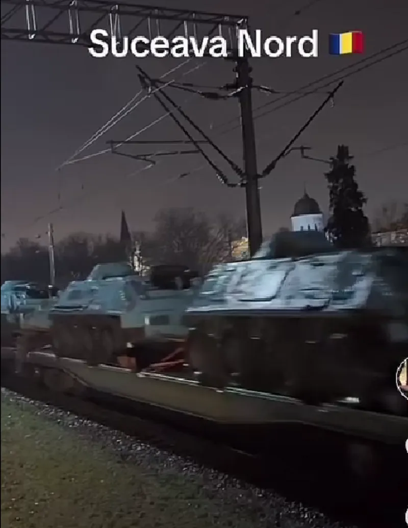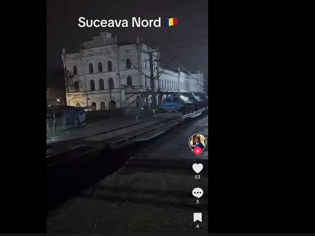 Cel care a postat filmarea susține că trenul cu transportoare blindate a fost surprins în Gara Suceava Nord. Mai jos aveți o captură din filmare.